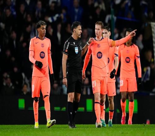体育播报1月19日宣 世体报道,西班牙裁判吉尔·曼萨诺再次对巴塞罗那不利,他在安诺埃塔球场的执法让巴塞罗那球员感到非常不满。这位41岁的裁判在比赛中多次激怒了以冷静著称的弗伦基·德容等球员。
