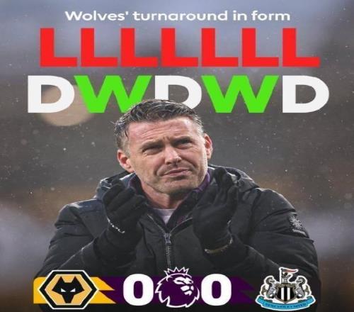 主场逼平实力不俗的纽卡斯尔联后,狼队球员们相互击掌,似乎找回了那支赛季初被打得七零八落的球队所丢失的东西,那就是信心和凝聚力。正如狼队官网所说的那样:“我们正看到隧道尽头的光明”。上轮英超,这支一度创造英超最差开局的球队在莫利纽球场0比0顽强战纽卡,将各项赛事不败纪录延续到五场。从开季19轮不胜的惨不忍睹战绩,到近期各项赛事2胜3平的不败战绩,狼队在主帅爱德华兹的率领下,似乎又看到了一丝保级希望。